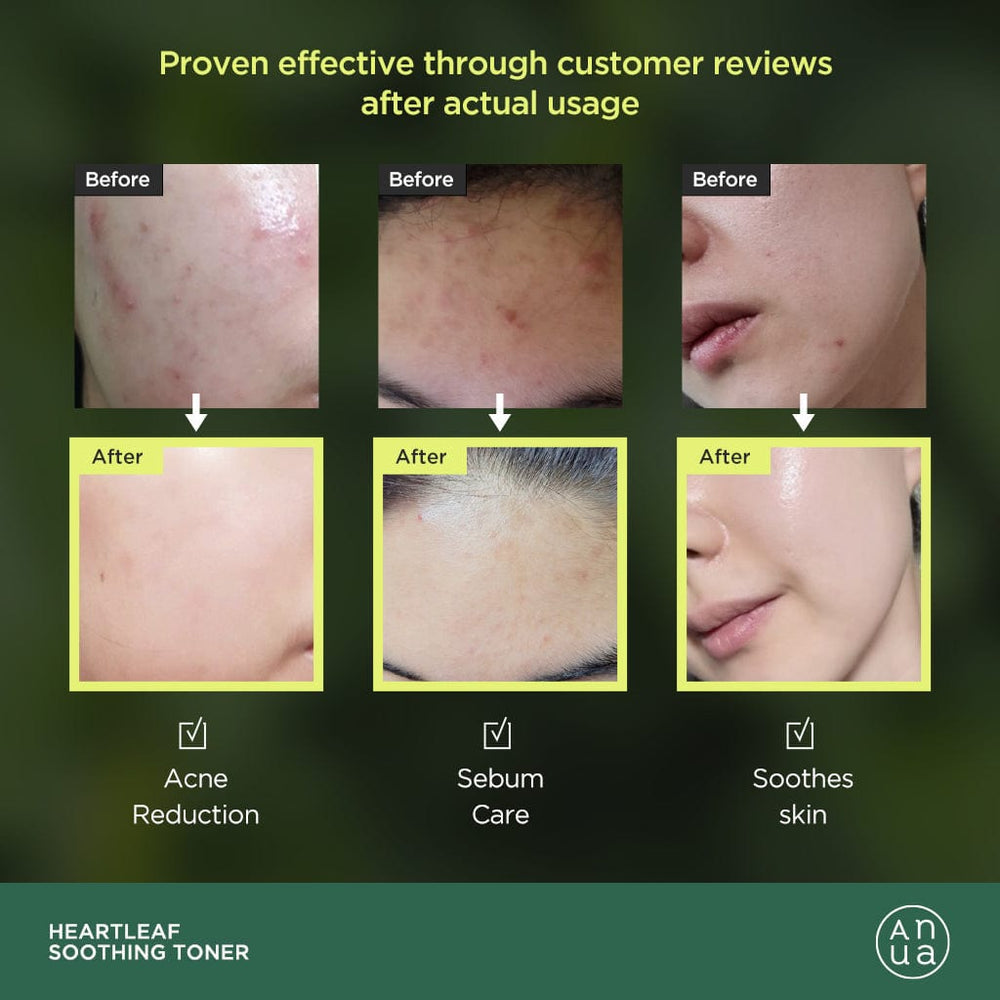 ANUA Heartleaf 77% Soothing Toner is an award-winning toner known for being highly moisturizing, gentle and soothing, even for sensitive acne-prone skin. It is mildly acidic to maintain pH balance and regulate the skin's oil-moisture levels. Houttuynia cordata (Heartleaf) is clinically proven to instantly improve hydration, reduce redness in 2 weeks, and decrease the appearance of acne in 4 weeks.